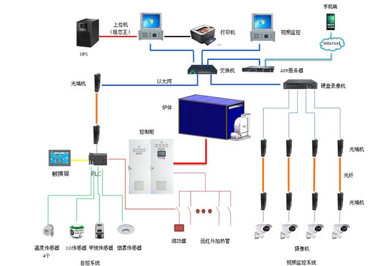系統(tǒng)組織框架 系統(tǒng)爐體采用巖棉板分層、分體組裝的方式,安裝、運(yùn)輸便捷,設(shè)置的聯(lián)鎖系統(tǒng),報(bào)警系統(tǒng),人機(jī)界面,中控系統(tǒng),視頻監(jiān)控系統(tǒng),手機(jī)APP,二次顯示儀表、現(xiàn)場(chǎng)總線等,具有節(jié)能、環(huán)保、無(wú)排放、無(wú)人值守、免維護(hù)、全自動(dòng)化、遠(yuǎn)程監(jiān)控的優(yōu)異功能 。 加裝的井口冷熱風(fēng)混合裝置,實(shí)現(xiàn)了井筒的冷熱風(fēng)充分混合,節(jié)能效果更好,手機(jī)APP系統(tǒng)實(shí)現(xiàn)了信息的集中顯示,包括溫度、電流、電壓、電能、CO濃度、CH4濃度和現(xiàn)場(chǎng)視頻等,另外系統(tǒng)實(shí)現(xiàn)了通過(guò)權(quán)限設(shè)置可直接在手機(jī)上對(duì)遠(yuǎn)程加熱回路實(shí)現(xiàn)啟?刂疲沟孟到y(tǒng)的使用更安全,管理更便捷。